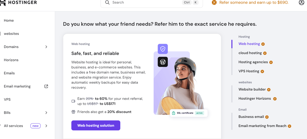 Speed: Hostinger’s infrastructure is optimized for WordPress and high traffic.