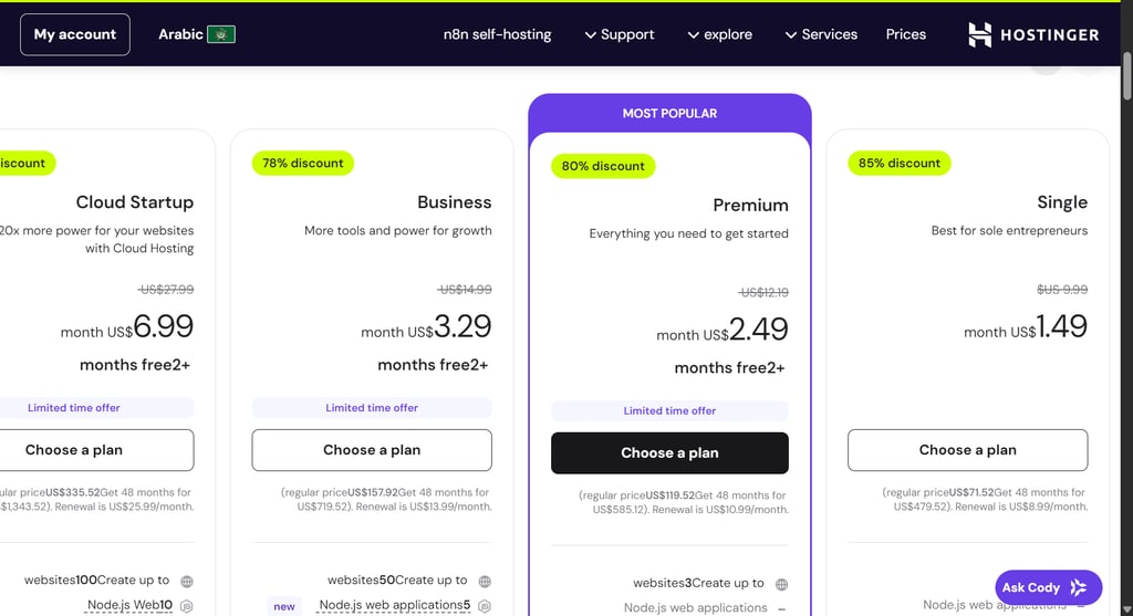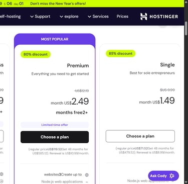 Hostinger offers several plans tailored to different needs: